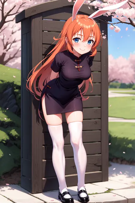 外見:シャーロット、青い目、オレンジ色の髪、長い髪、ウサギの耳、ウサギの尻尾