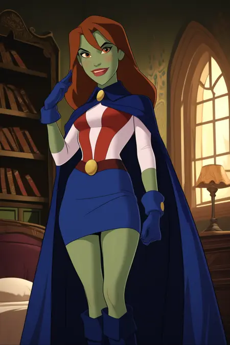 Made to pair with other LoRAs. Use green skin for her original look, colored skin or white skin for her new design. Using milf will change her hairstyle and face to match the new design as well. Good for SFW and NSFW. Can use her telekinesis or fly with the prompt: floating, flying, glowing eyes.