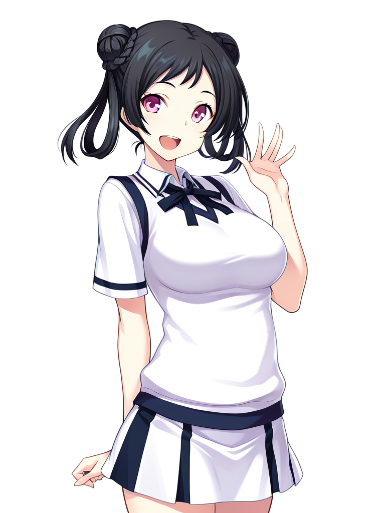 사야카: 마유즈미 사야카, 검은 머리, 낮은 트윈테일, 파란 눈,