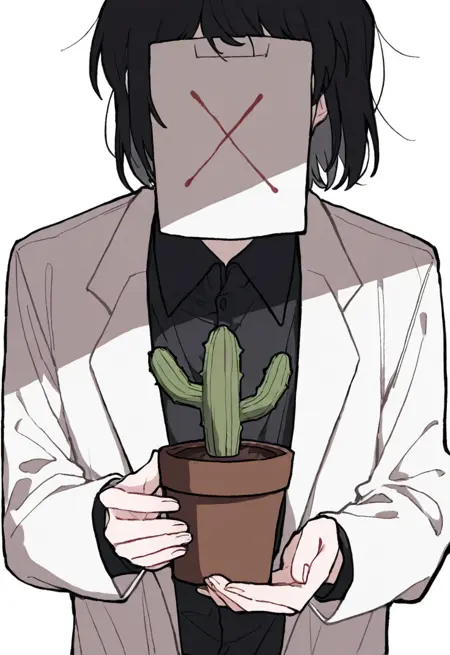 AyinX,遮面,黑发,短发,黑衬衫,黑裤子,棕色腰带,棕色鞋子,白大褂