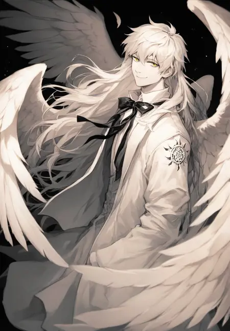 AyinAdam,手臂纹身,黄眼睛,白发,长发,白长袍,灰裤子,赤脚