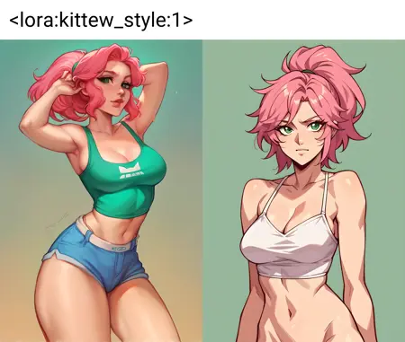 アートスタイルLoRAは、Kittewの作品に基づいてトレーニングされています。