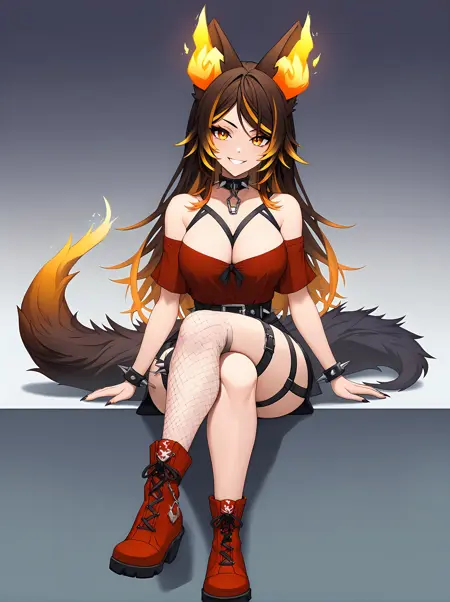 ヘルハウンドウルフVtuber、シンダー用キャラクターロラ。通常形態と青い炎形態の両方を含みます。