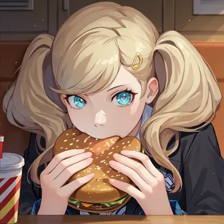 • "jermaWhopper, eating, burger, looking at you, upper body"를 추가하면 누군가가 Jerma985를 흉내내게 됩니다.