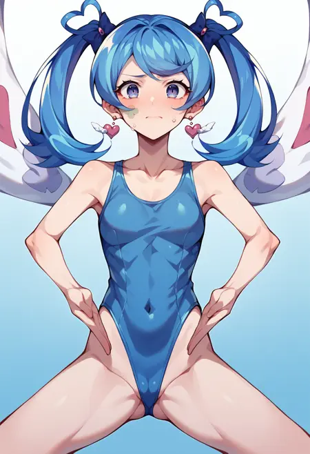 collarbone, leotard, sleeveless, haigure pose, open hands, standing, spread legs