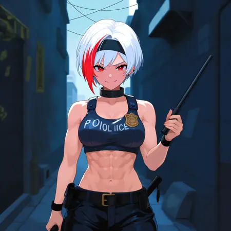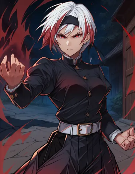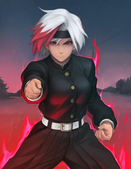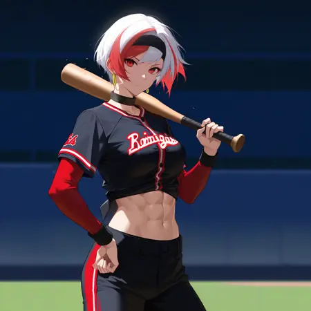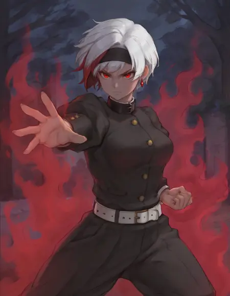 - 외모 태그: 다색 머리카락, 흰 머리, 빨간 머리, 짧은 머리, 빨간 눈, 근육질, 복근