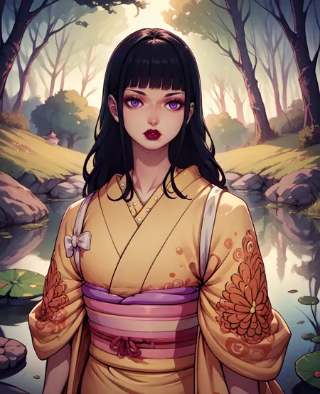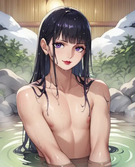 kikunojoxl,紫色眼睛,马尾辫,黑色头发,或深蓝色/紫色头发