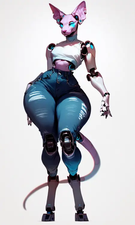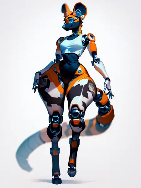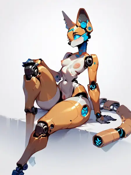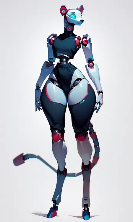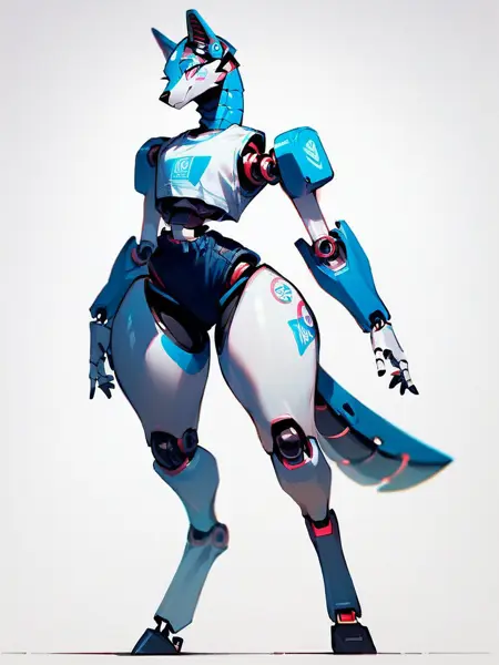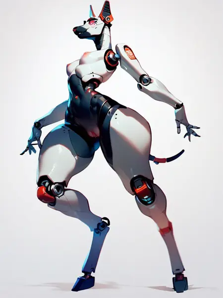 Keywords: robofur_anthro or robofur, (animal_name) anthro, robotic, digitigrade or plantigrade, female or woman, futa or futanari, femboy,