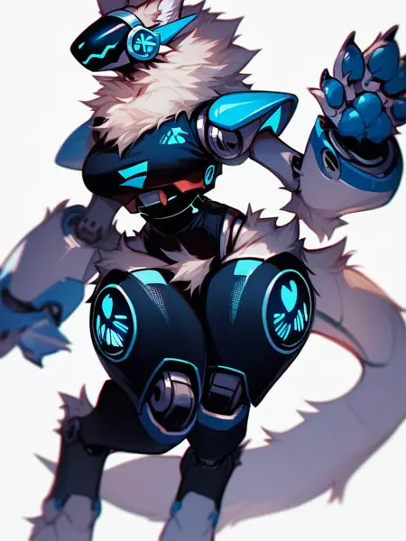 你的提示应类似这样:score_9, score_8_up, score_7_up, {source_furry | source_anime}, BREAK solo, robotic [动物名称] anthro, machine, living, machine, robot, robot joints, {digitigrade | plantigrade},