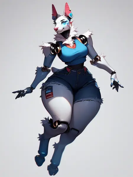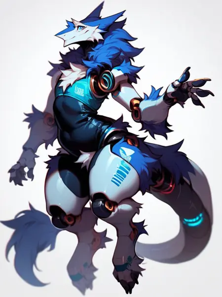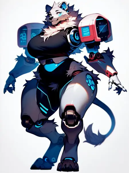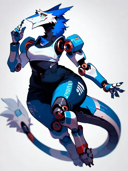 关键词:robofur_anthro 或 robofur, (animal_name) anthro, robotic, digitigrade 或 plantigrade, female 或 woman, futa 或 futanari, femboy,