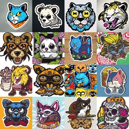 ((die_cut sticker)) colored punk animal illustration, die_cut sticker in style of vector-art