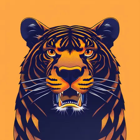 ((die_cut sticker)) colored tiger illustration on white background, centered, die_cut sticker in style of vector-art