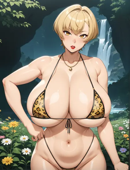 肚脐,胸脯,泳装,比基尼,动物纹,微小比基尼,黄色比基尼,高腰比基尼,豹纹