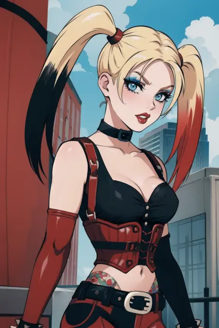 哈莉·奎因 小丑:阿卡姆之城 LoRA。此为我LoRA 请求表单中的请求。建议使用 0.8~1.0 的强度。触发词:harley quinn (batman arkham city)推荐标签:参考示例图像中的提示词
