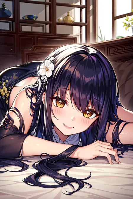 可选提示词(Optional prompt words): black_gloves, mole_under_eye, mole, pantyhose, very_long_hair,