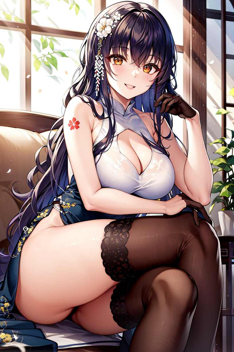 オプションプロンプト(Optional prompt words): black_gloves, mole_under_eye, mole, pantyhose, very_long_hair,