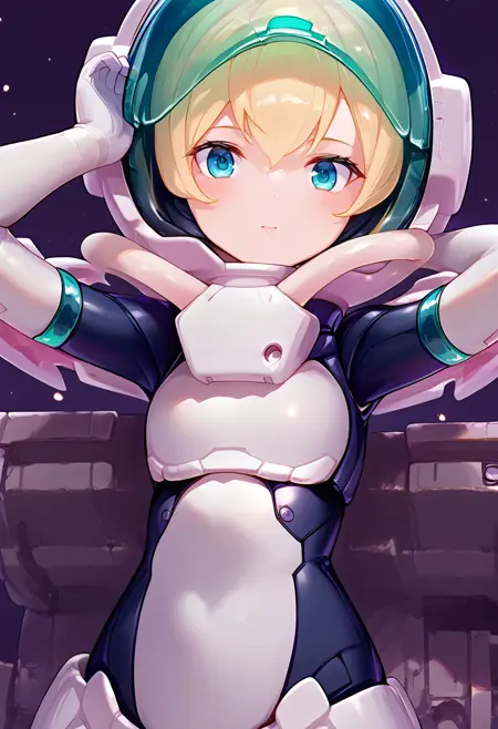 タグ(その他、正しく画像を出力しにくい):宇宙ヘルメットのビジョンが顔を覆う