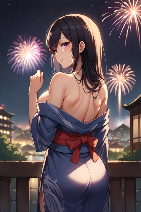 캐릭터 트리거: ntsmg, 눈 밑 점, 큰 가슴, 보라색 눈, 검은 머리, 긴 머리