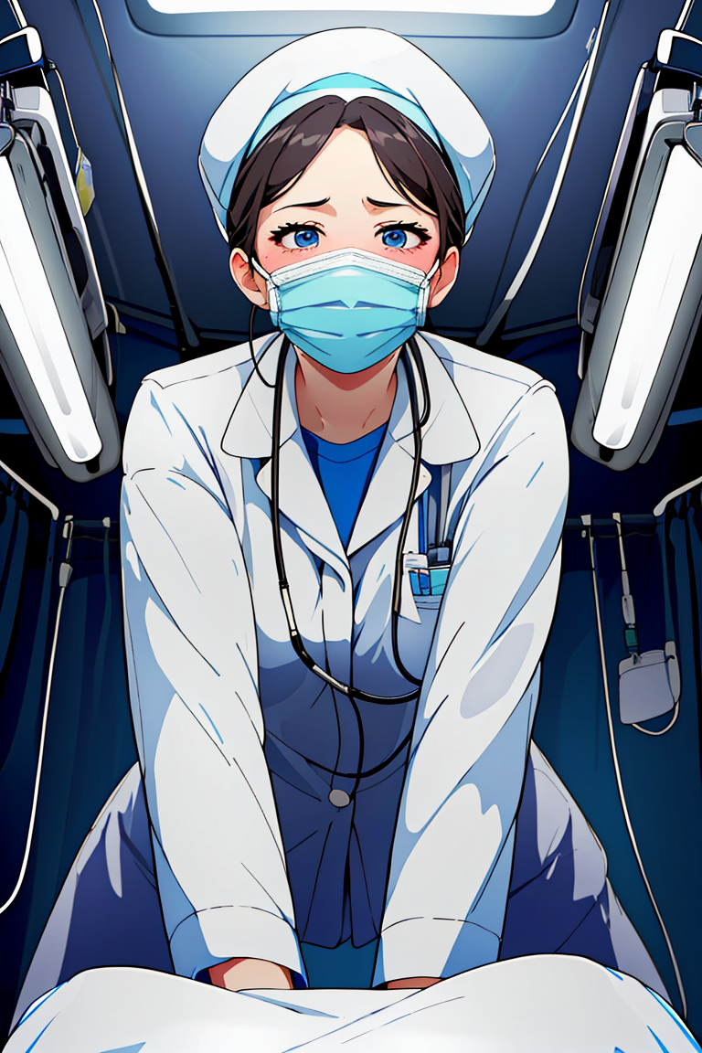 doctor_cpr_alt, 1girl,solo, surgical mask, pov, looking at viewer, blush, hat,