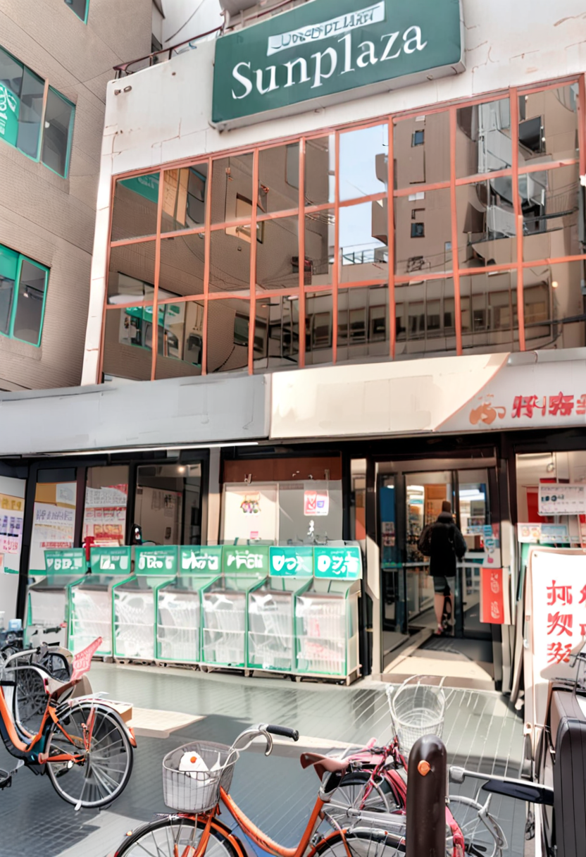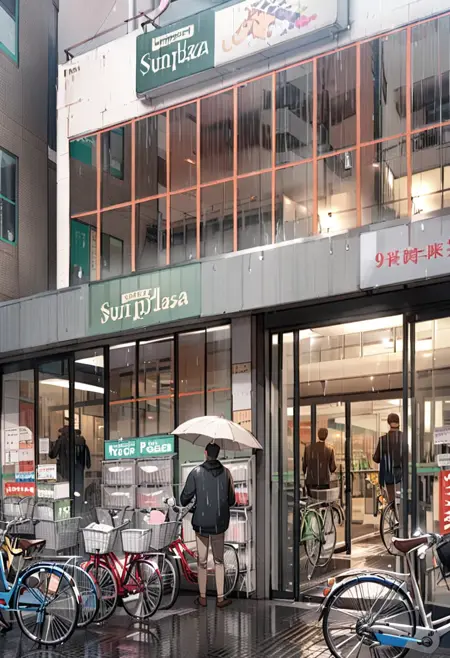 This is LoRA that could possibly draw a SUNPLAZA Kishi store-like landscape illustration. これはSUNPLAZA喜志店っぽい風景イラストをもしかすると描くことができるかもしれないLoRAです。