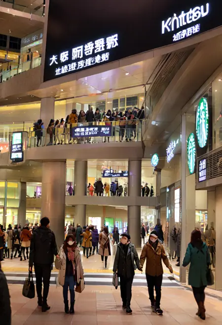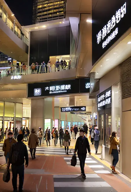 abenobashieki, 6+boys, train station, multiple boys, real world location, multiple girls, night, bag, scenery, walking