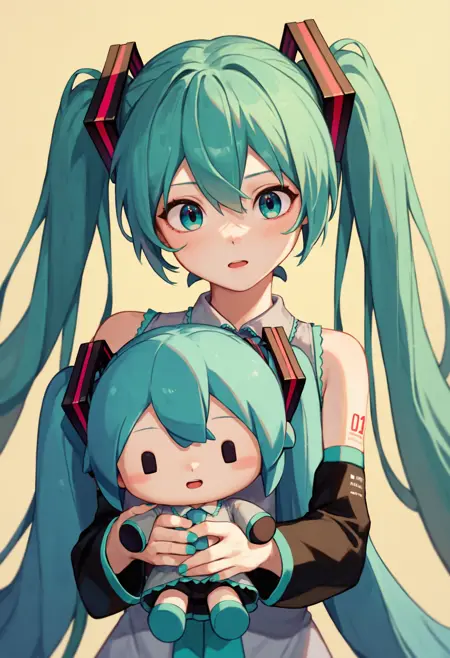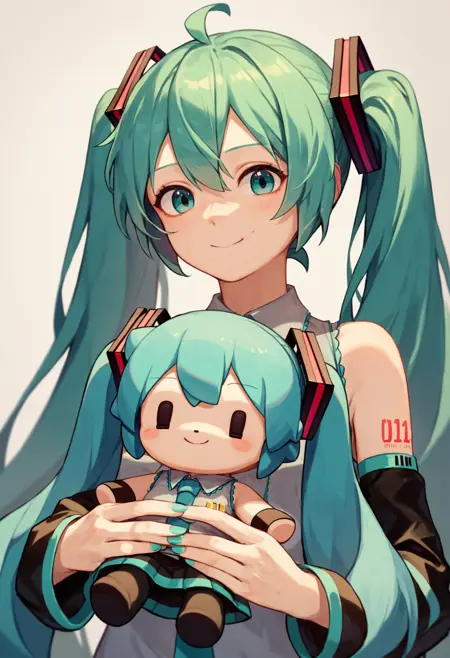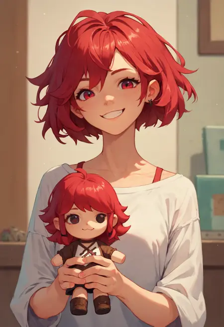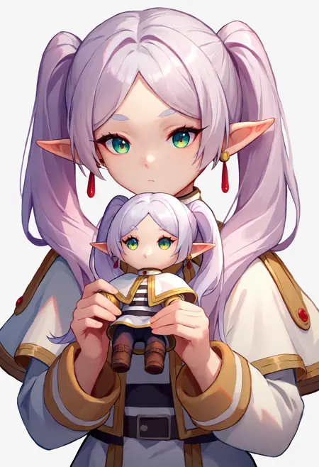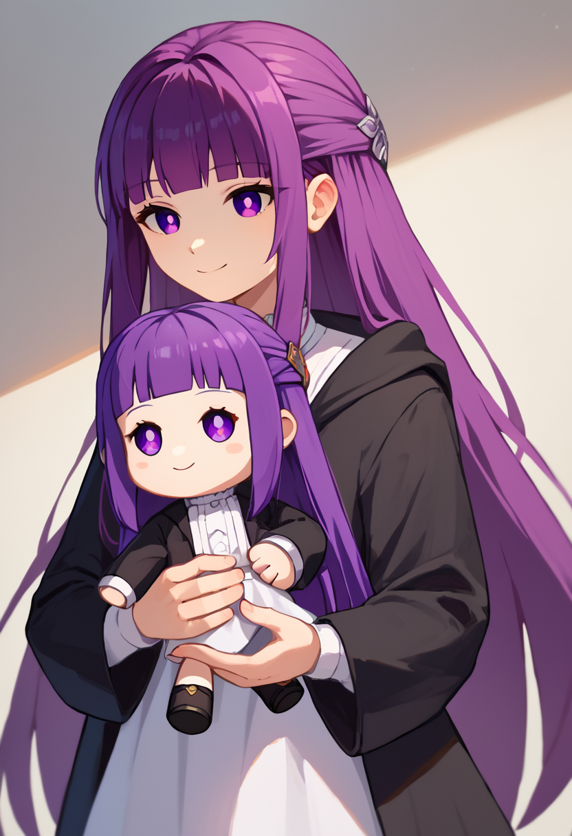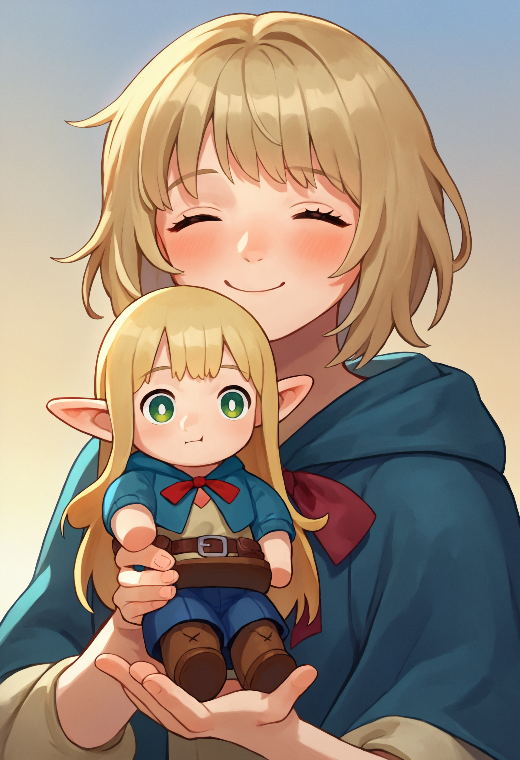 캐릭터가 캐릭터 인형을 들고 있는 PonyXL 개념 LoRA. 제목 예시(Falin과 Marcille)는 지역 프롬프터를 사용합니다.