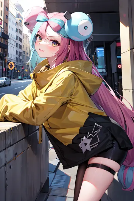 iono1, 긴 머리카락, 노란 자켓, 긴 소매, 머리 장식