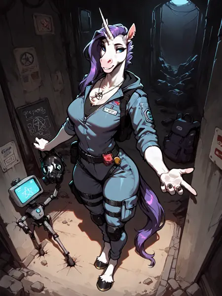 Only my very own artwork and my own generated or rendered images were used to train this LoRA. When trying to recreate my character, please credit or ping @femtoAmpere (e.g. femtoAmpere_(character) on e6ai.net).