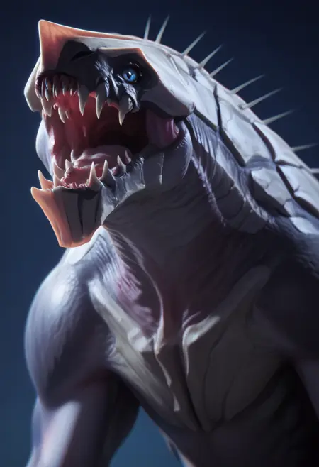 kh4ilf, no humans, monster, teeth, sharp teeth, claws, blue eyes, tentacles