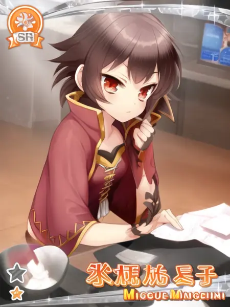 一个训练不足的版本(v0.1) 也已提供,包含卡片文字。与v1.0不同的是,v0.1使用带空格的日文名(如 朝比奈 龍季)作为角色标签。有趣的是,它能相当可靠地为分布外角色生成正确的罗马音首字母。