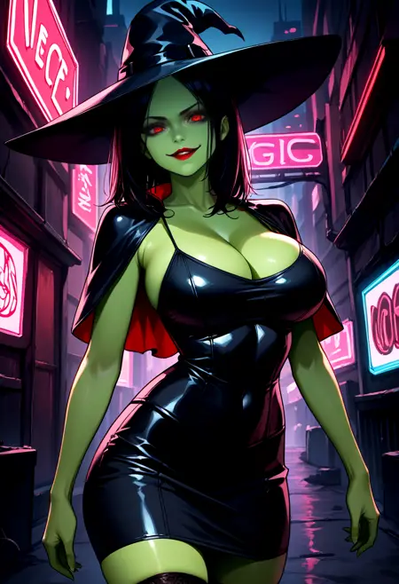 • 프롬프트: GruntyPDXL, 검은 드레스, 검은 머리, 아이섀도우, 녹색 피부, 짧은 드레스, 스파게티 스트랩, 붉은 눈, 붉은 입술, 검은 아이섀도우, 가슴선, 연필 스커트, 스킨타이트, 갈라진 앞머리, 중간 길이 머리, 곧은 머리