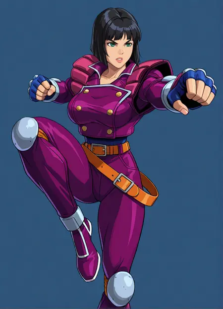 替代:锦标赛格斗家风格、紫色服装、肘部护具、膝部护具、露指手套、橙色腰带,(训练数据中对此版本的参考较少)