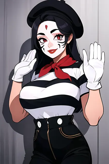 没有触发词,但一些词汇如“领巾”、“条纹衬衫”、“贝雷帽”、“吊带”、“手套”和“彩绘脸”是可选的,有时能起到很大作用。