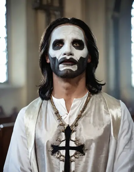 これは私が初めて作成したLORAです。バンドGhostのキャラクター、パパ・エメリタス用のLORAです。パパ・エメリタスのLORAがほとんどないのがとても残念です。初めての試みなので、これで大丈夫でしょうか🤣 そして、ほとんどがパパIVの画像になります。