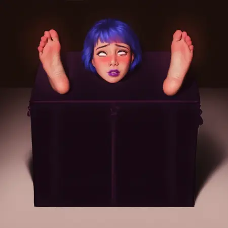 Stuck in {object}, 1boy/1girl, solo, {body parts}, {[optional] {color} grommets} {remaining description}