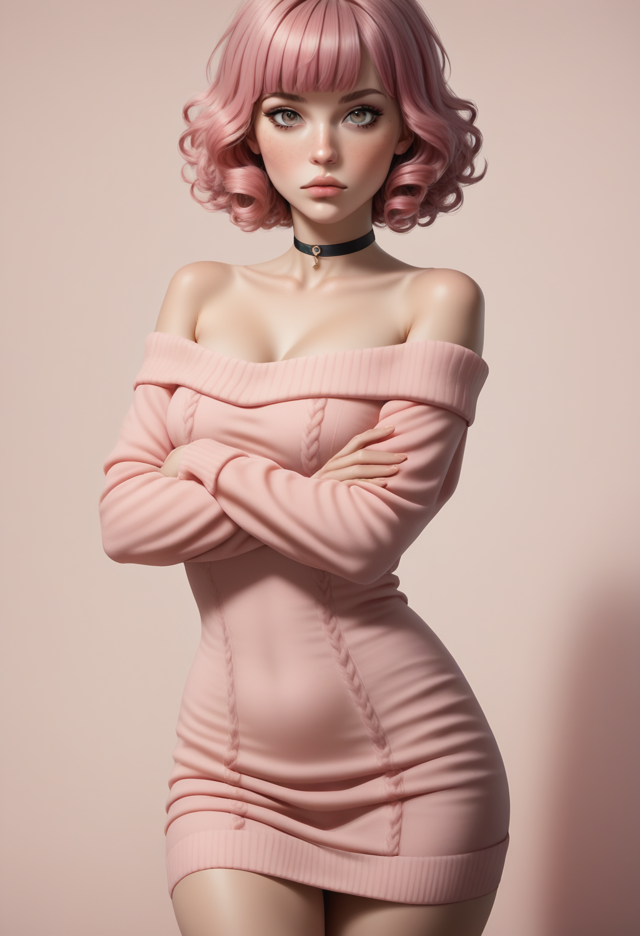 Secondary: short hair, blunt bangs, (only needed at low weights)