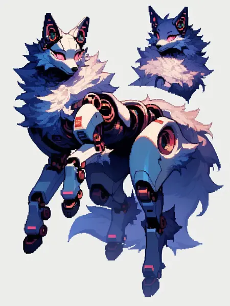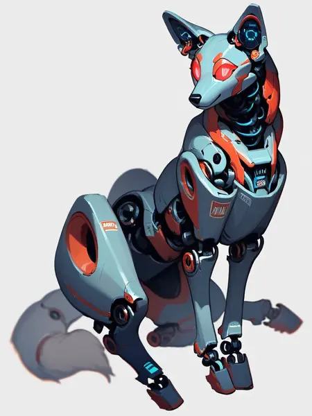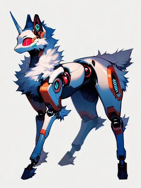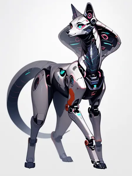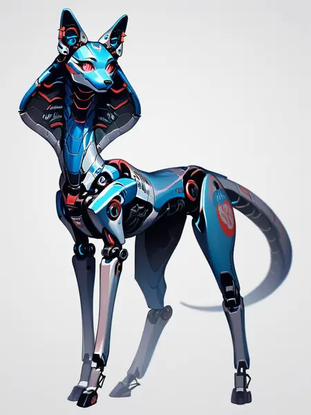 키워드: robofur_feral 또는 robofur, (animal_name), robotic, digitigrade,