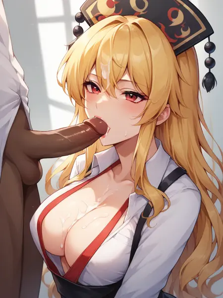 トリガー語: "junko \(touhou\), ブロンドの髪, 赤い目, フェニックスの冠, 大きな胸"
