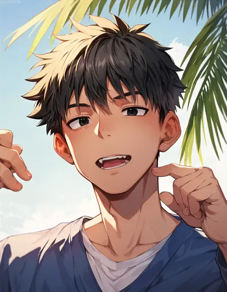 【taniguchi】这是一款将日本人特征(小而圆的眼睛、扁平的鼻子、大嘴巴)极度强化的动漫风格模型。我个人比morimichi更喜欢这种画风,觉得更具有男孩气质。