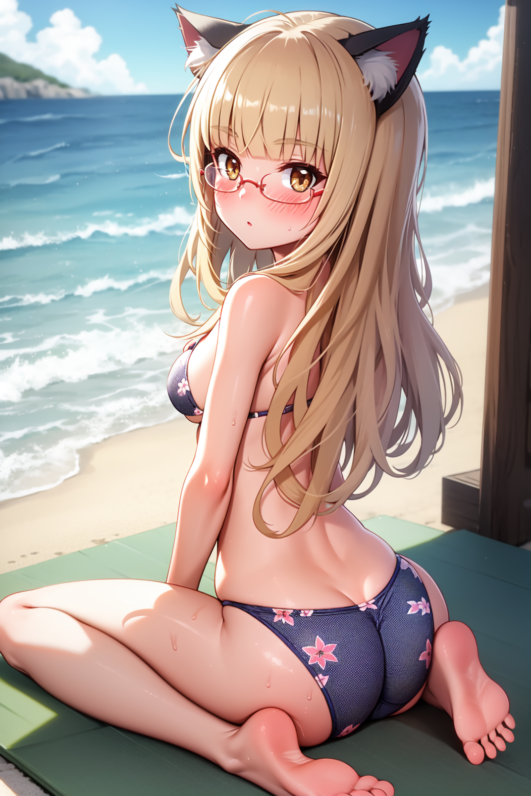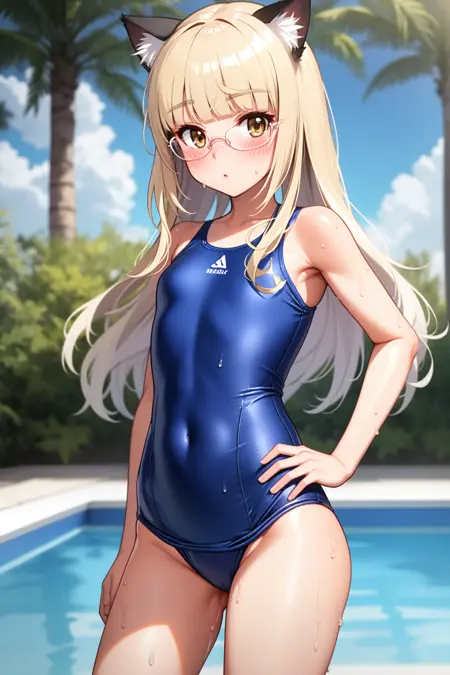 外見:クロスターマン、茶色の目、金色の髪、長い髪、まっすぐな前髪、猫の耳、猫の尾
