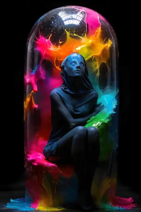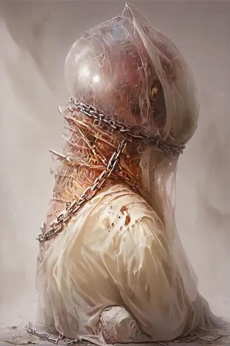 あらゆる半透明、不透明な素材や物質に包まれ、覆われた人々の表現主義的な芸術的写真……あるいはなんというか。表現的なポーズを含む。中には人物がまったくいないものもあるし、特定の素材をプロンプトにしたからといって、それがその素材で学習されたという意味ではない。ただどうなるか見てみたかっただけだ。(以下のリストは一部のトリガー用)