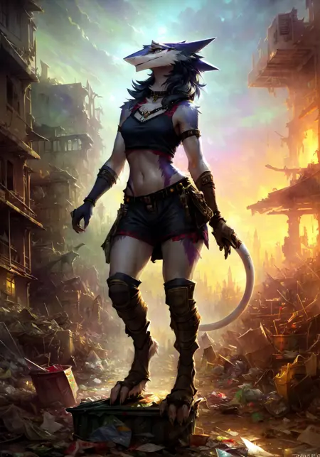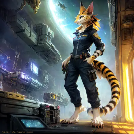 주요 문제점은 다리에 가끔 불필요한 손가락이 생기는 것 외에도 허리 끝의 꼬리입니다. 꼬리는 길고 말리며, SD는 자주 두 개의 꼬리 혹은 심지어 원형 꼬리를 만들어냅니다. '여러 개의 꼬리', '잘 그려지지 않은 꼬리' 등의 부정적 태그를 활용해 시도해볼 수는 있지만, 대부분 효과는 패러독스적이거나 의미가 없습니다.