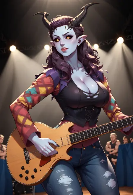 'alfira' 是主标签,'alfiraOutfit' 用于服装,'colored sclera' 用于她发光的眼睛。
