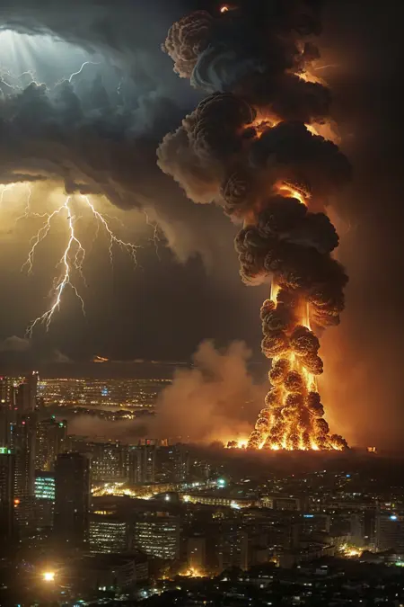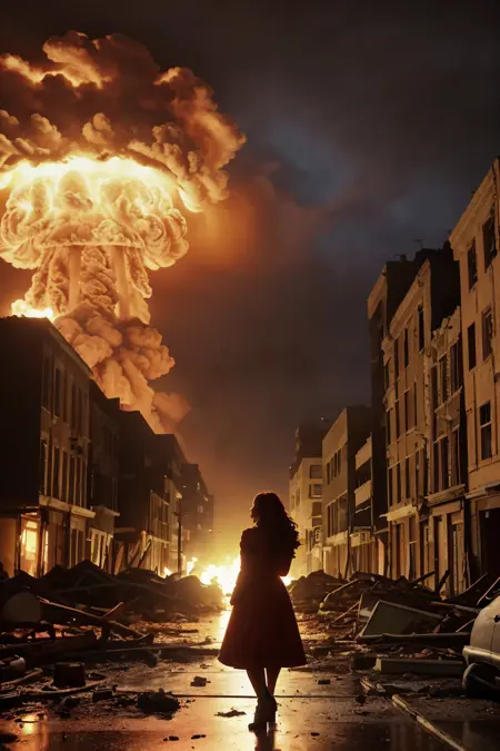 Chaos Engine 是一个 LoRA,用于生成灾难性的破坏和自然灾害场景。它可以生成逼真的废墟和火焰、爆炸和闪电、龙卷风或熔岩、洪水和巨浪,以及被毁坏的建筑,并添加一些透视效果以创造更具创意的构图。
