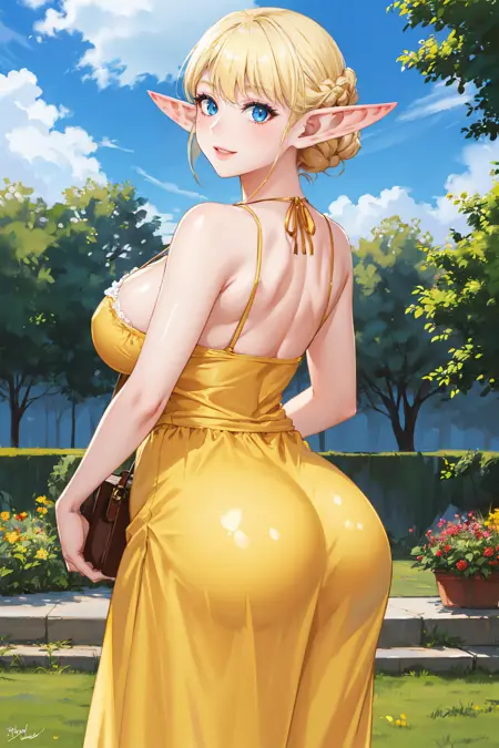 『プラスサイズのエルフ』のエルフダ(またはエルフダさん)。NAIで学習済み。強度0.8-1.0でテスト済み。