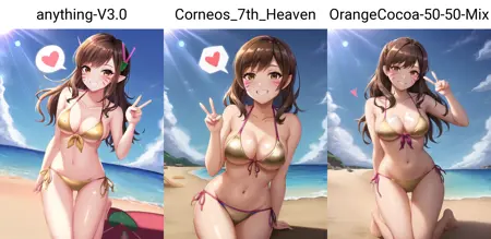This is a checkpoint mix I've been experimenting with - I'm a big fan CocoaOrange / Latte, but I wanted something closer to the more anime style of Anything v3, rather than the softer lines you get in CocoaOrange. If that sounds like something you want, this is the mix for you!