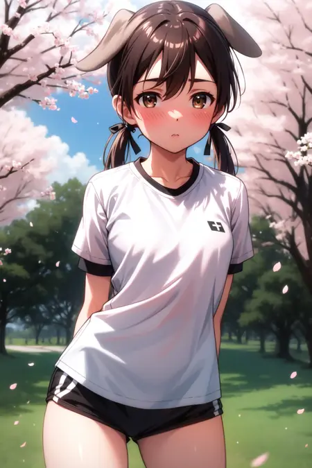 외형: 바크혼, 갈색 눈, 갈색 머리카락, 낮은 트윈테일, 개 귀, 개 꼬리