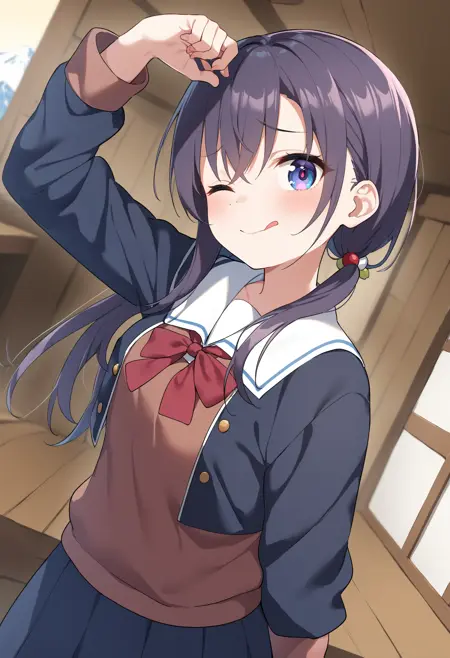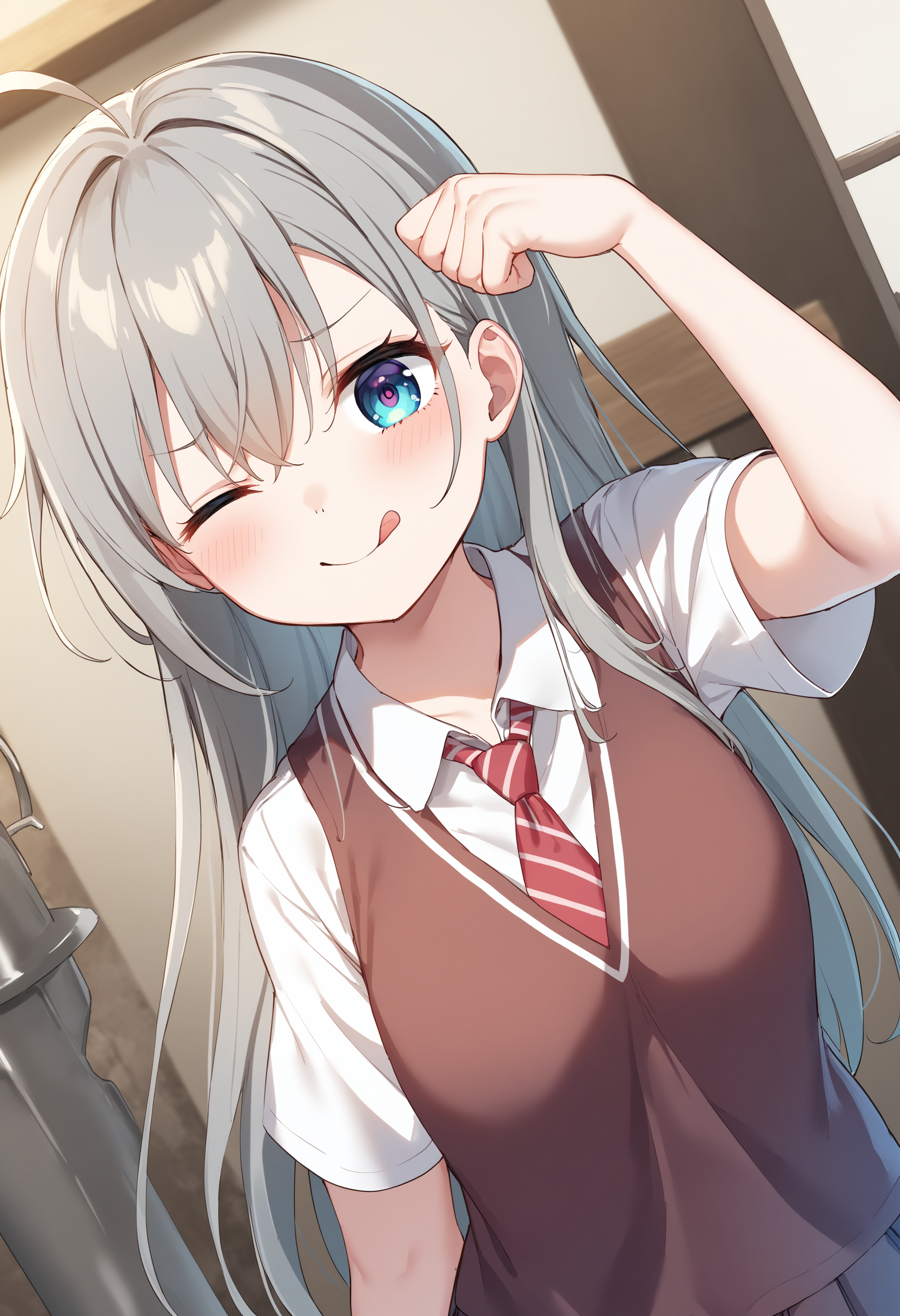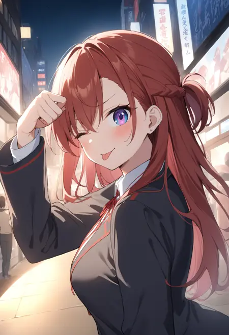 这是闭上一只眼睛、伸出舌头的LoRA姿势。