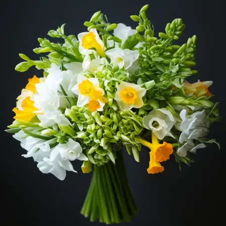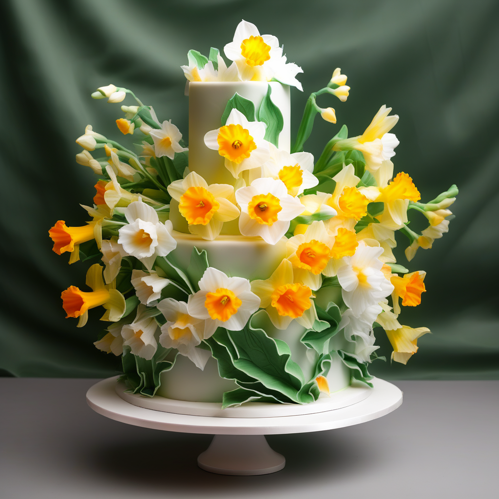 結婚式のケーキ、フンドント型、招待状その他の紙製品、この版には水仙、エンドウのつる、ハニーサックルが描かれています。