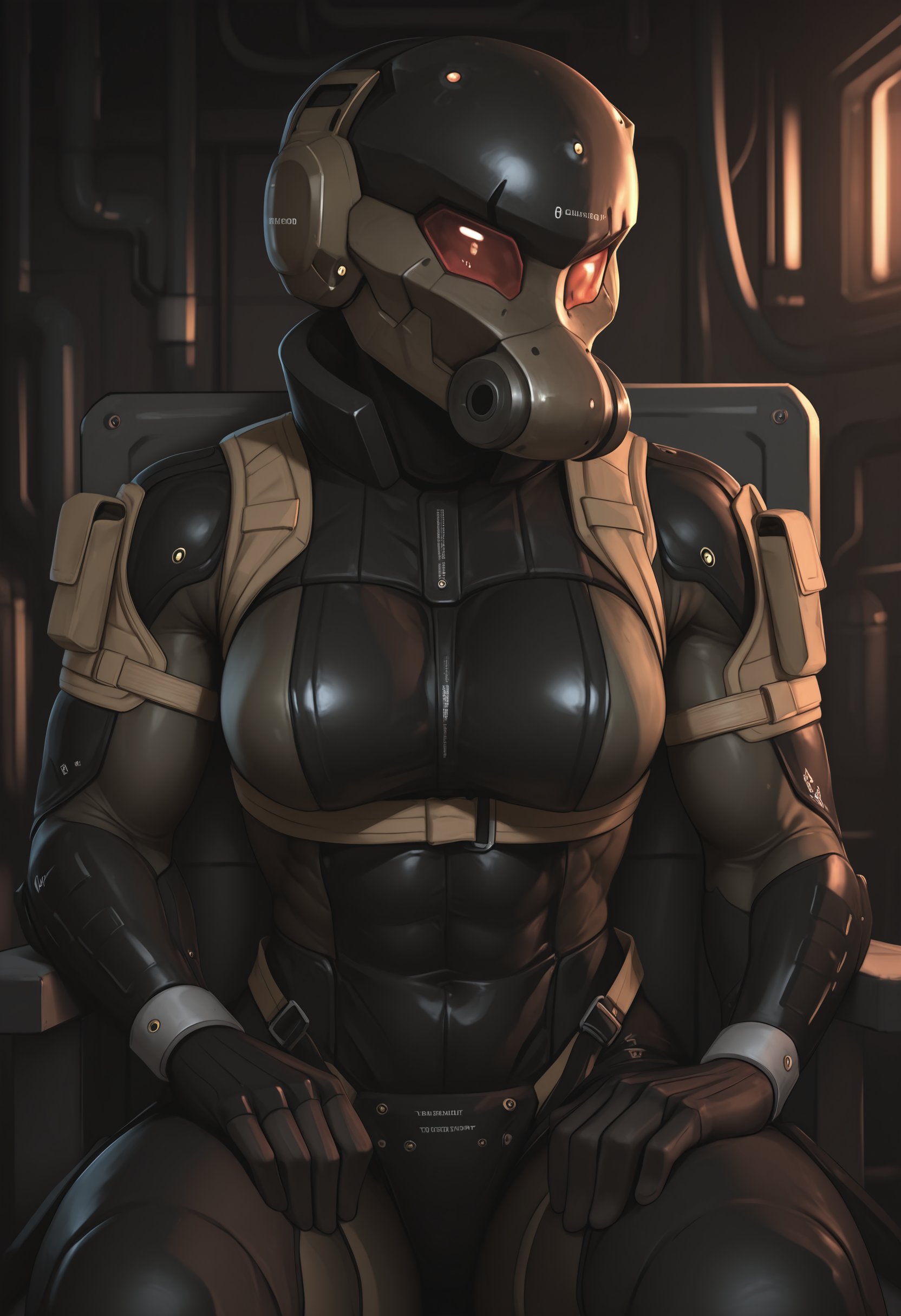 score_9, score_8_up, score_7_up, score_6_up, score_5_up, score_4_up, 1girl, lora:HavenTrooper:0.95 large breasts, bodysuit, helmet, mask, red eyes, glowing, faceless, standing, view from front, looking at viewer, upper body shot, v sign,